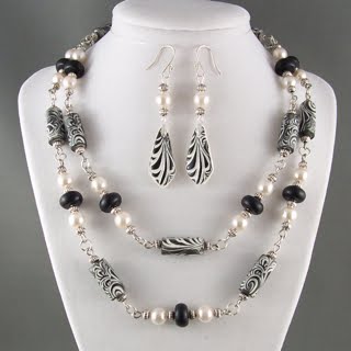 Iridescent Pearl Heart With Black and White Pearls and Beads